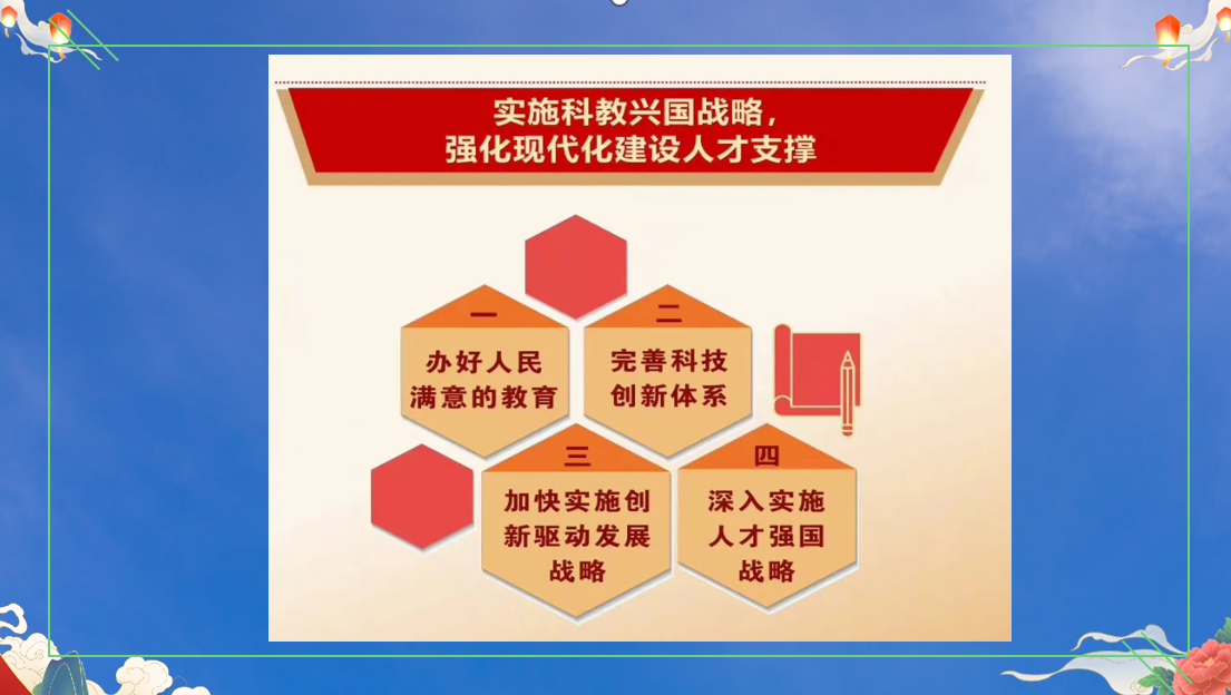 刘姗姗同志首先就党的二十大报告中关于“科教兴国”相关表述进行系统梳理和回顾,并强调党的二十大报告进一步凸显了教育、科技、人才在现代化建设全局中的战略定位,进一步彰显了党中央对于教育、科技、人才事业的高度重视。