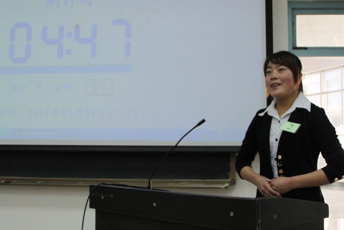 我院第六届技能大赛于2011年3月28日拉开序幕。由基础部承办的“希望之星”英语口语演讲大赛(决赛)也于当日在崇文西楼隆重举办。比赛评委由赵金柱、屈春献、张伯民、张萍等八位教师及外籍教师John和Paul组成,基础部部长张绪绪、党总支书记杜云、办公室主任来耀兵及公共英语教研室的教师参加了比赛。