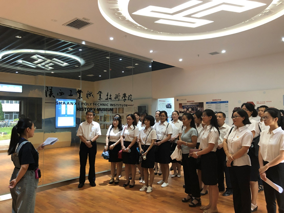 在校史馆,全体教师重温历史,认真了解了陕西工院的历史发展进程、特色文化底蕴和取得的巨大成就;随后,全体教师共同学习了《新时代高校教师职业行为十项准则》和《高等学校教师职业道德规范》;最后,全体教师高唱国歌,在青年教师康瑾老师的带领下整齐肃立,面对国旗进行了庄严宣誓。