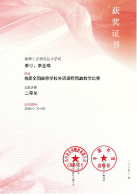 为进一步发挥外语课程在立德树人方面的积极作用,全面提升高校外语教师课程思政教学能力。近日,由高等教育出版社与《中国外语》编辑部共同举办了“首届全国高等学校外语课程思政教学比赛”。我院公共课教学部英语教研室李可、李亚琪团队和赵金柱、张雨曦、刘姗姗、庞博予、张亦炫团队分获全国决赛二等奖。