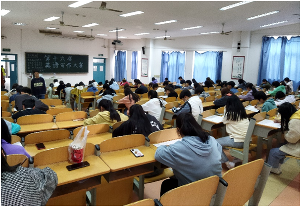 为提高学生的英语写作水平,促进英语教学质量的提高,为国省赛选拔选手,3月29日,我院第十六届英语写作大赛在崇文西楼103、104教室顺利举办,来自全校各二级学院的100多名英语爱好者参加了比赛。大赛由公共课教学部主办,英语协会协办。