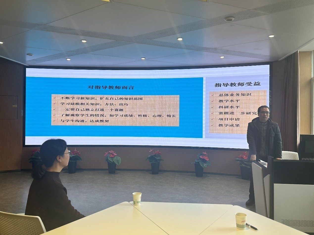 12月26日下午,公共课教学部在崇文主楼A309举办2023年全国大学生数学建模竞赛赛题讲评与经验交流会,会议邀请全国大学生数学建模竞赛陕西省组委会专家、西北大学窦霁虹教授作报告。会议由公共课教学部部长赵娇主持,公共教学党总支书记苏宏志出席会议、全体数学建模指导老师及部分参赛学生参会。