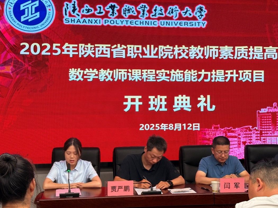 开班仪式上,首先,继续教育与培训学院院长闫军对参训学员表示欢迎并介绍了学校在教育教学、社会服务等方面的基本情况。随后,公共课教学部部长赵娇从培训目标、培训内容及安排、考核形式等方面详细介绍了培训方案,并提出了培训纪律要求。陕西工业职业技术大学田恬作为授课教师代表发言,陕西交通职业技术学院牛曦辰作为学员代表发言。最后,继续教育与培训学院副院长贾严鹏表示,将认真组织、严格管理、做好服务,保障培训质量,推动职业院校数学教师课程实施能力提升。
