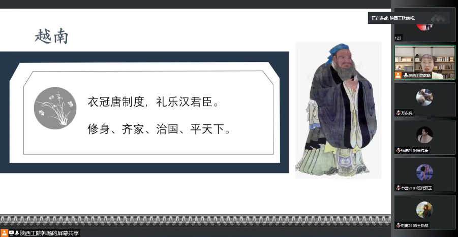 10月2日,为进一步发挥党建引领作用,引导师生坚定文化自信,公共教学党总支联合商贸与流通学院党总支开展了“中国文化在东南亚”主题党课讲授,公共教学党总支第一支部组织全体党员教师于会议室A501认真听学。