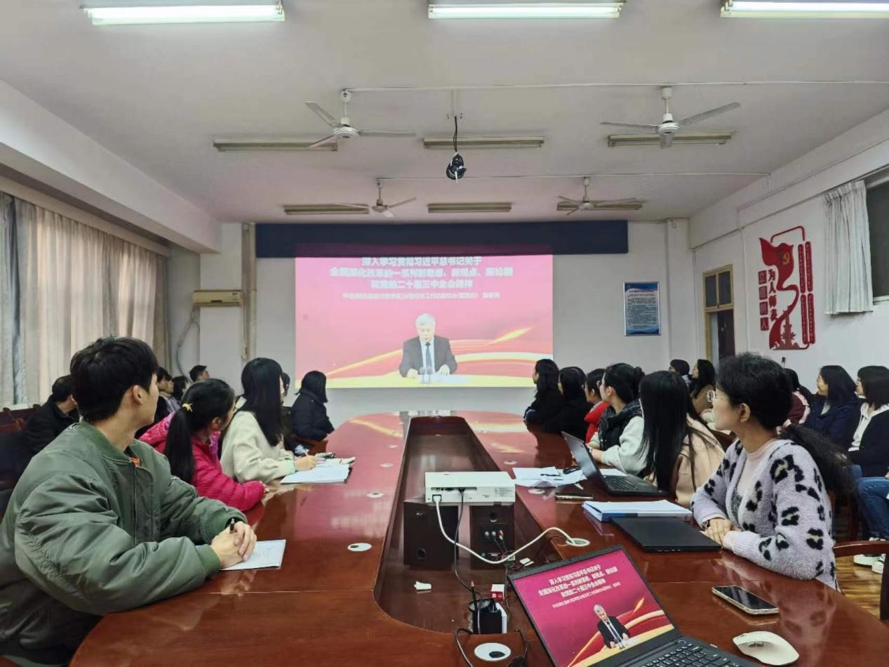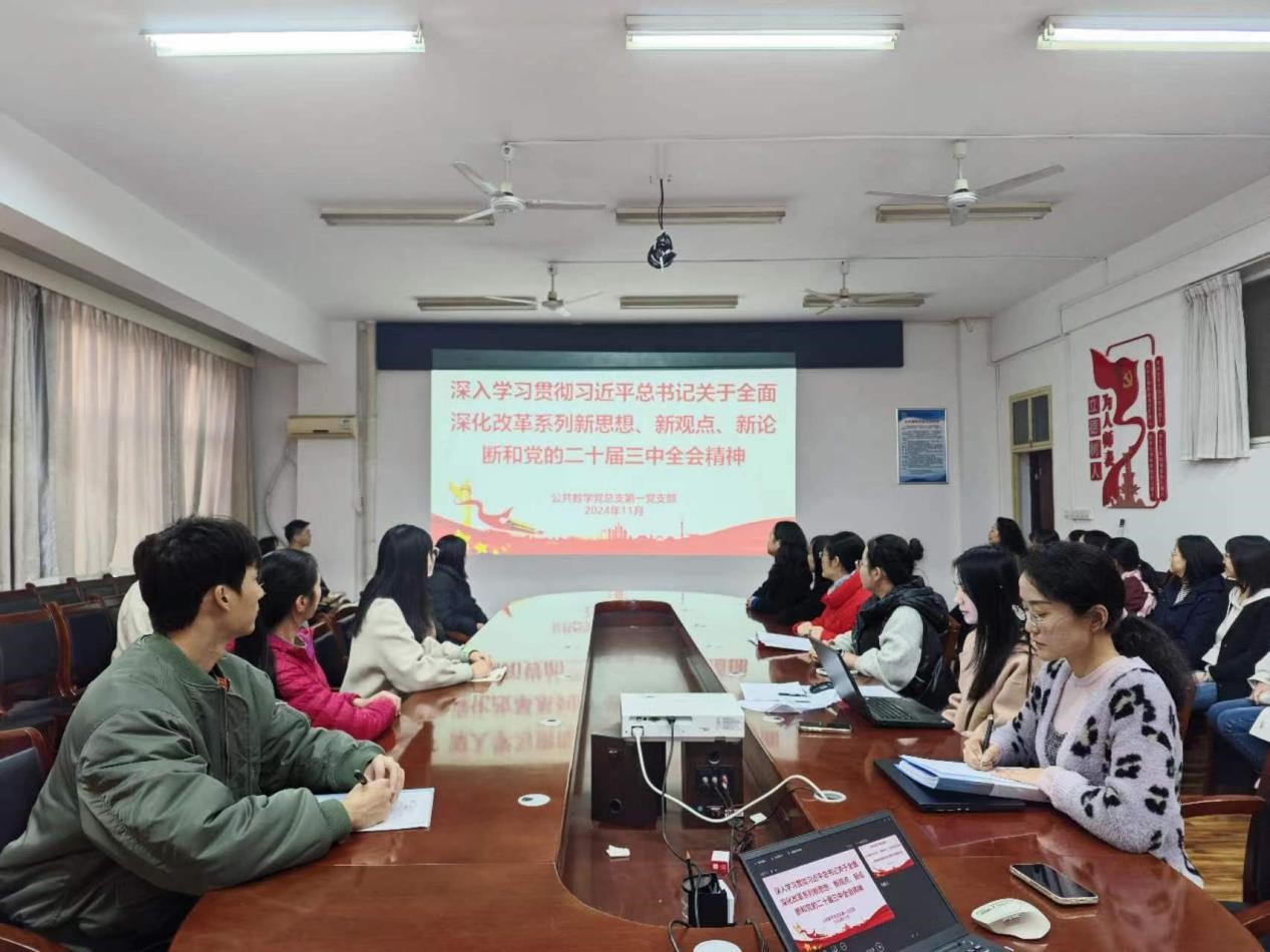 11月20日下午,公共教学党总支第一党支部在崇文南楼501会议室组织专题学习,深入学习贯彻习近平总书记关于全面深化改革的一系列新思想、新观点、新论断以及党的二十届三中全会精神。本次专题学习活动由支部书记韩畅主持,第一党支部全体成员参加。