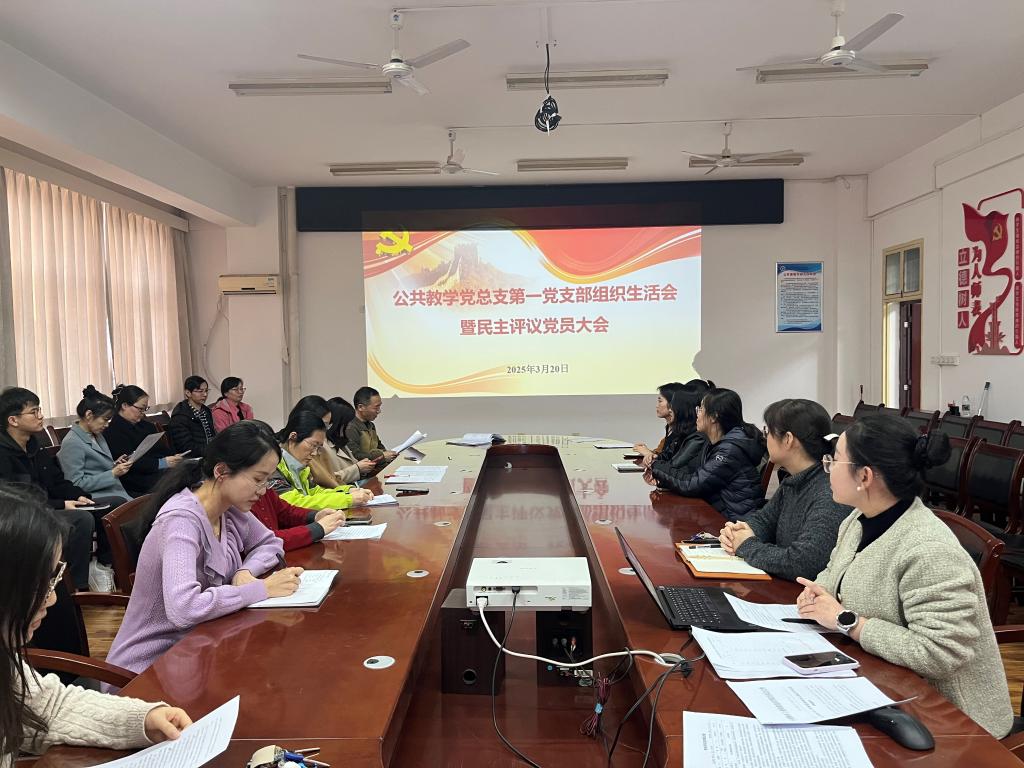 3月 20日下午,公共教学党总支第一党支部在崇文楼A501会议室组织召开组织生活会暨2024年度民主评议党员大会,会议由支部书记王琪同志主持,支部全体党员参加会议。