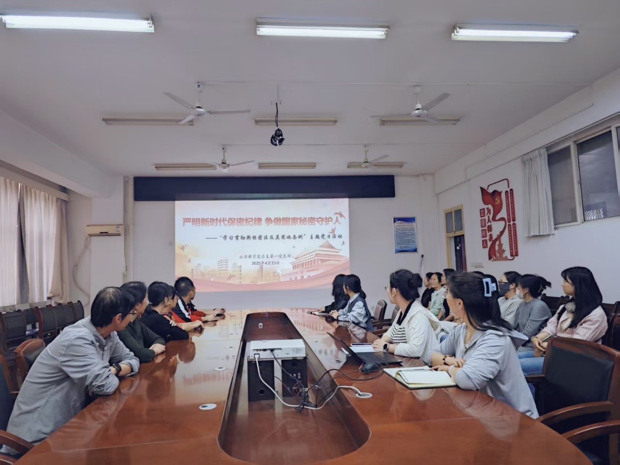 4月23日下午,公共教学党总支第一党支部在崇文楼A501会议室组织开展“学习贯彻新保密法及其实施条例”主题党日活动,会议由支部书记王琪同志主持,支部全体党员参加会议。