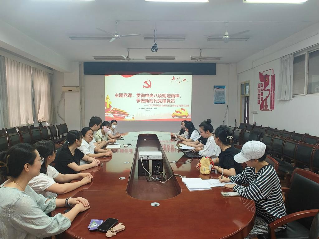 会议第二阶段,支部书记张亦炫围绕"贯彻中央八项规定精神,争做新时代先锋党员"主题讲授专题党课。党课从理论内涵、实践要求和作风建设三个方面进行了深入讲解,全体党员认真学习并展开热烈讨论。会议强调,全体党员要持续深化理论学习,严守纪律规矩,强化责任担当,为推动学院高质量发展作出新贡献。