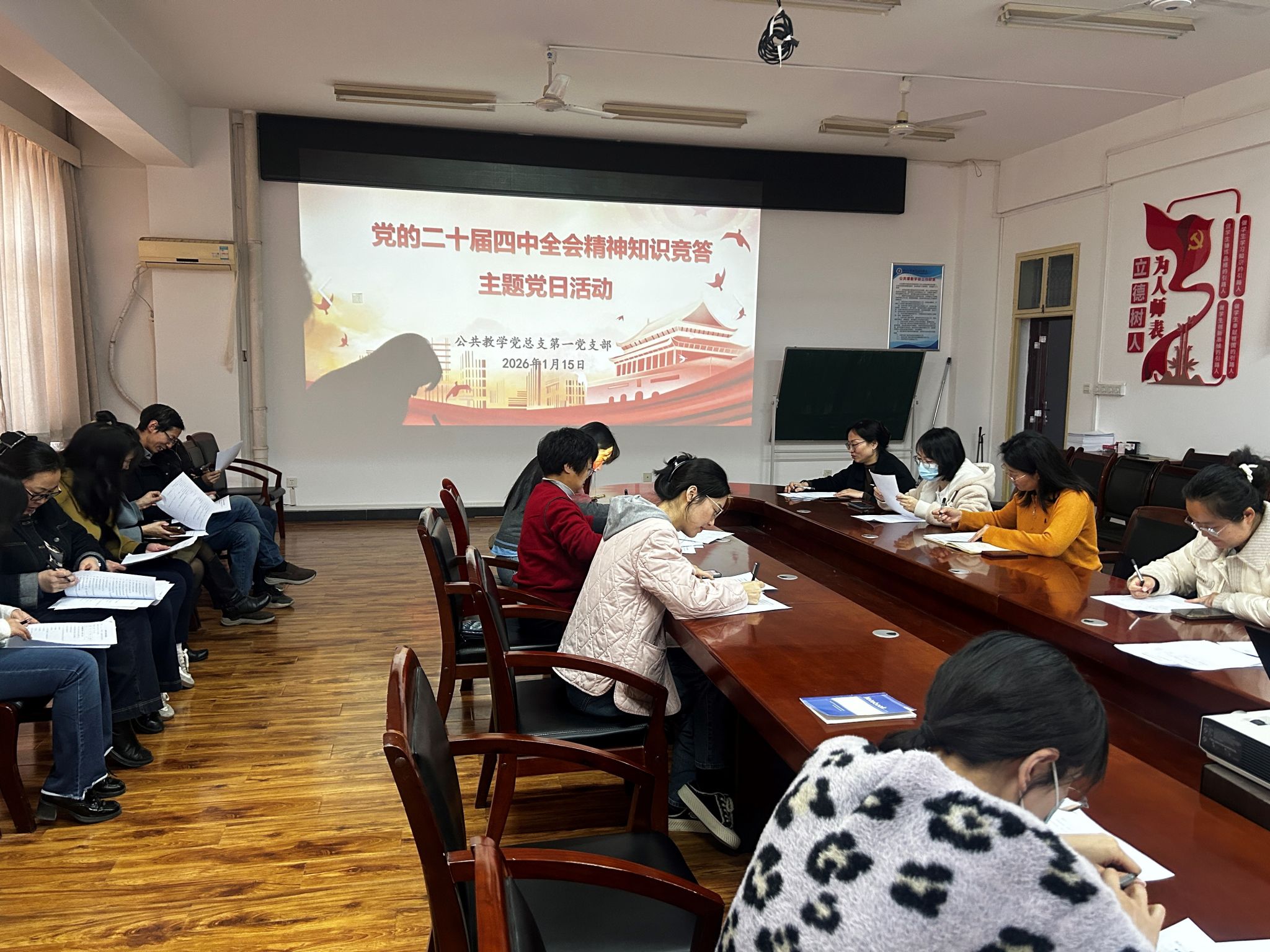 为深化理论学习成效,激发党员队伍学习热情,1月15日下午,公共教学党总支第一党支部于崇文南楼501会议室精心组织党的二十届四中全会精神知识竞赛。支部全体党员踊跃参与,以赛促学、以学促行,掀起理论学习新热潮。